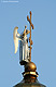 портиками увенчан световой ротондой, опирающейся на четыре внутренних столпа. С запада к нему пристроена двухъярусная колокольня под шпилем. Декоративное