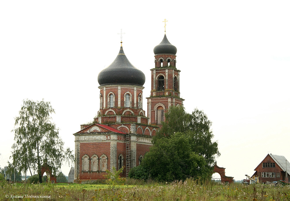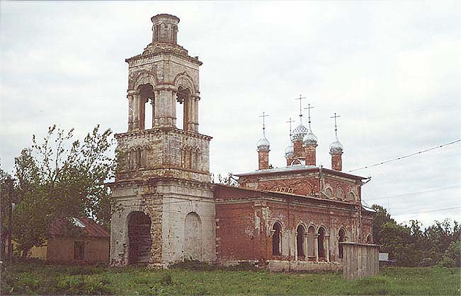 трапезная, с севера одноглавый придел. Высокая двуъярусная шатровая колокольня и западная паперть перестроены заново в XIX в. в псевдорусском