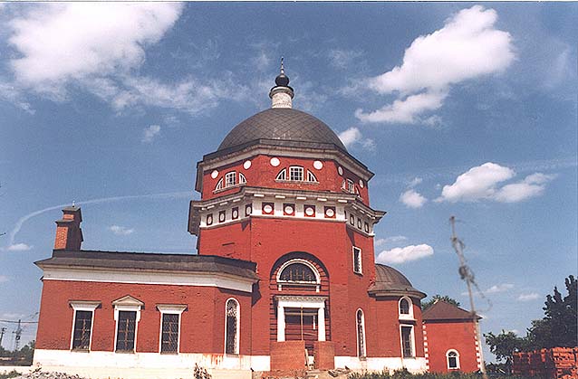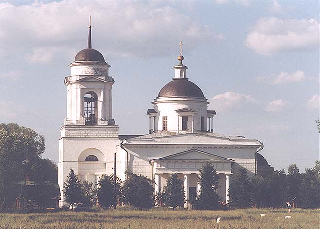 | Хороший образец московского ампира. Кубический храм с боковыми шестиколонными
