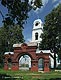 главкой; с востока - полукруглый алтарь. Небольшой притвор соединяет церковь с двухъярусной шатровой колокольней, выдержанной в