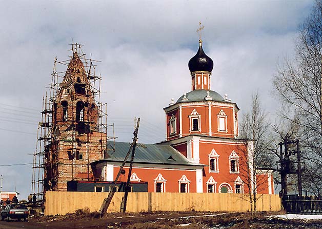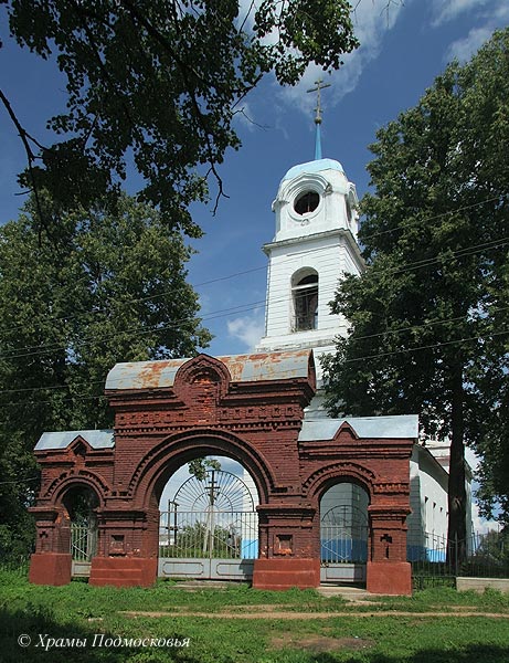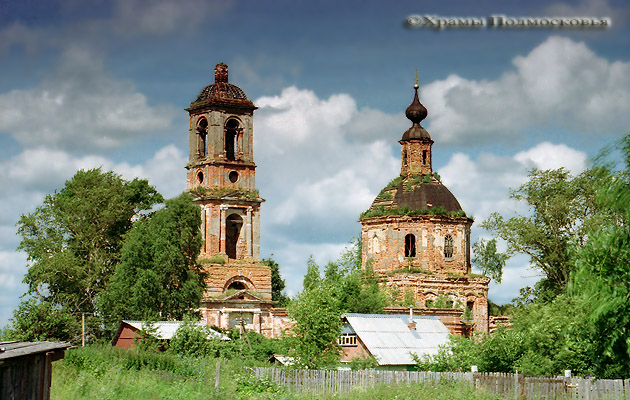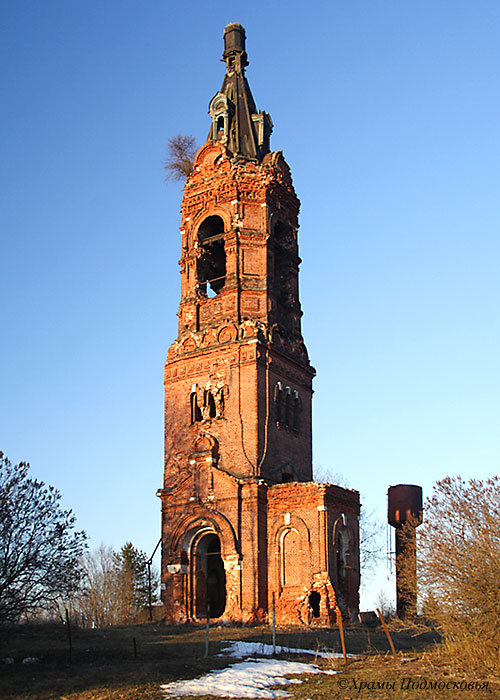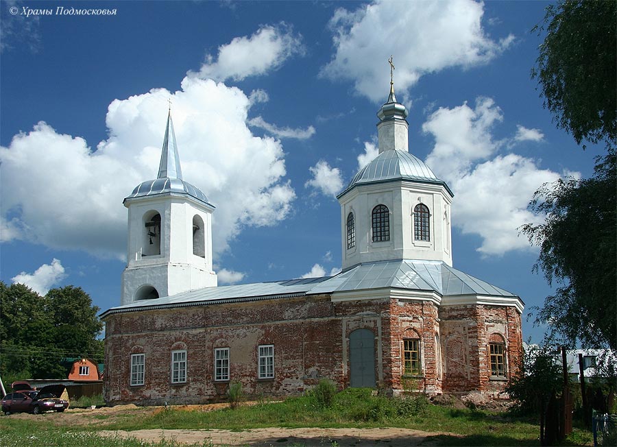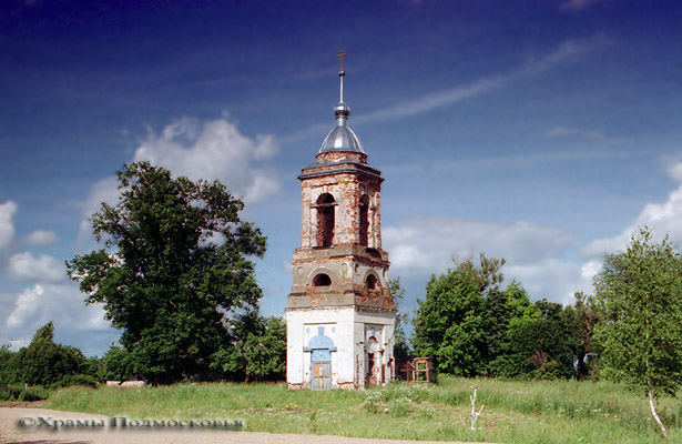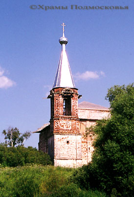 восьмериком, перекрытым шатром со слухами. С востока к храму примыкает прямоугольный алтарь, с запада - прямоугольная звонница, увенчанная