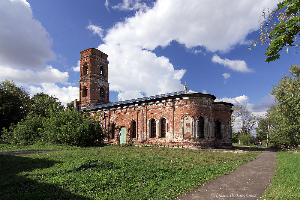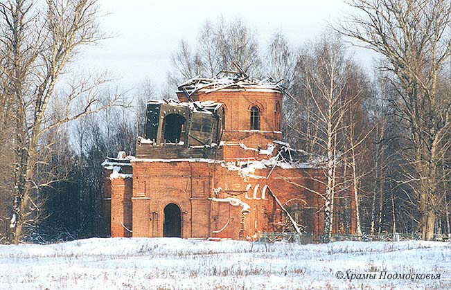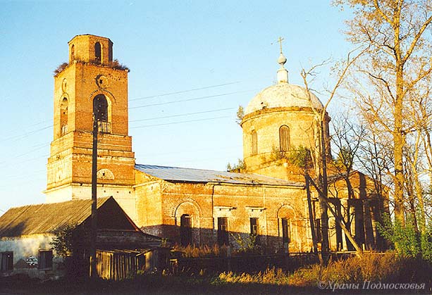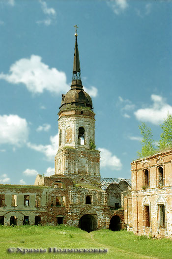 храм и вытянутую трапезную, с востока завершен полукруглой апсидой, а с запада - первым ярусом несохранившейся колокольни.