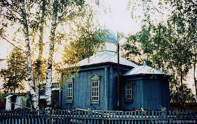 деревенской часовни, статус церкви получила в 1918. Невысокий бесстолпный храм выделен боковыми фигурными фронтонами (по