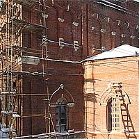 | Кирпичная, с деталями из белого камня, была оштукатурена