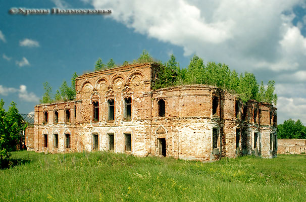 увенчан восьмигранным барабаном (глава утрачена). Ветви креста выделены ризалитами и большей высотой, сообщающей сооружению