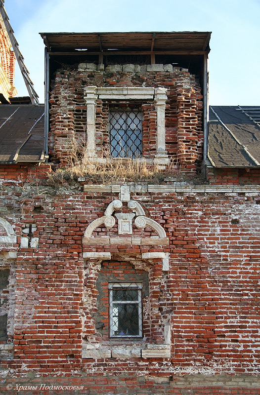 кубических ярусов и была перекрыта куполом. В декоративном убранстве здания интересны выполненные из кирпича декоративные гирлянды, проходящие на середине