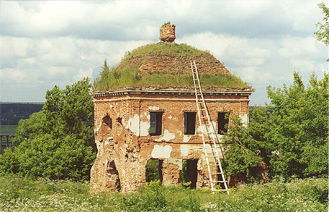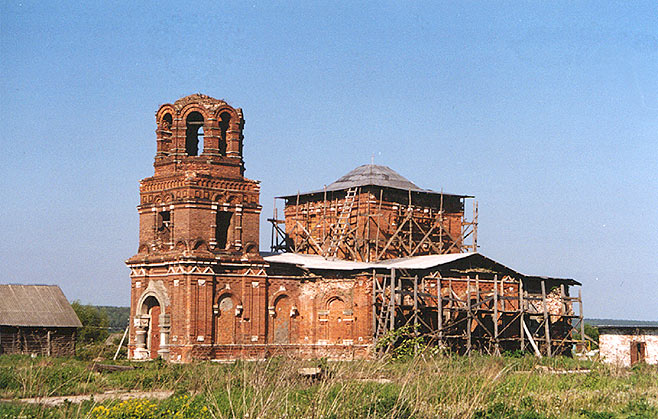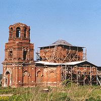 | От здания церкви уцелел только холодный храм, трапезная и колокольня сломаны.