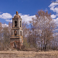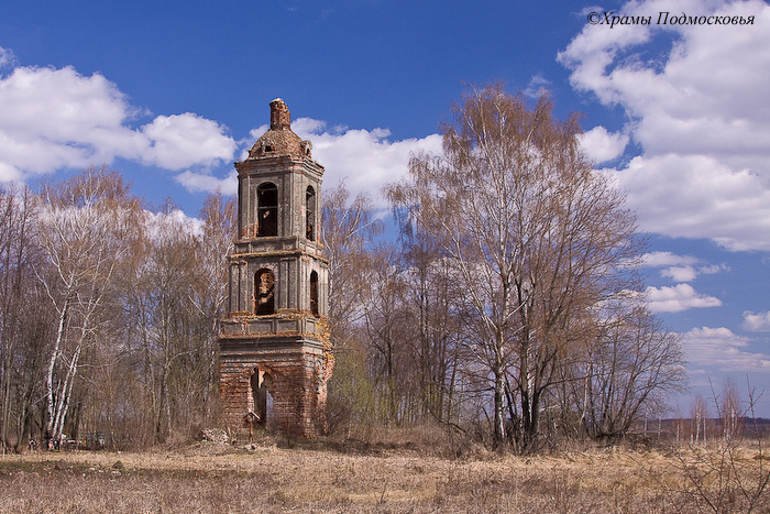 | От здания церкви, сломанной в сер. ХХ в., уцелела только колокольня. Колокольня