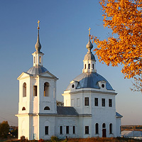 | Основной объем храма – крупный двусветный бесстолпный четверик, увенчанный луковичной