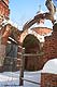 паперть. Четырехскатная кровля, расширенные окна и вычурная глава на световом барабане повторяют облик древнего храма,