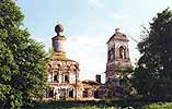 "восьмерик на четверике", к которому с востока примыкает трехчастный алтарь, а с запада небольшая трапезная и колокольня в