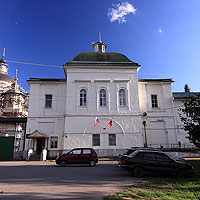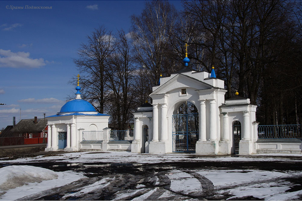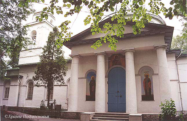 барабане в линии ограды Успенской церкви. Фасад оформлен портиком на сдвоенных полуколоннах, повторяющим мотив Святых ворот.