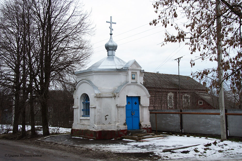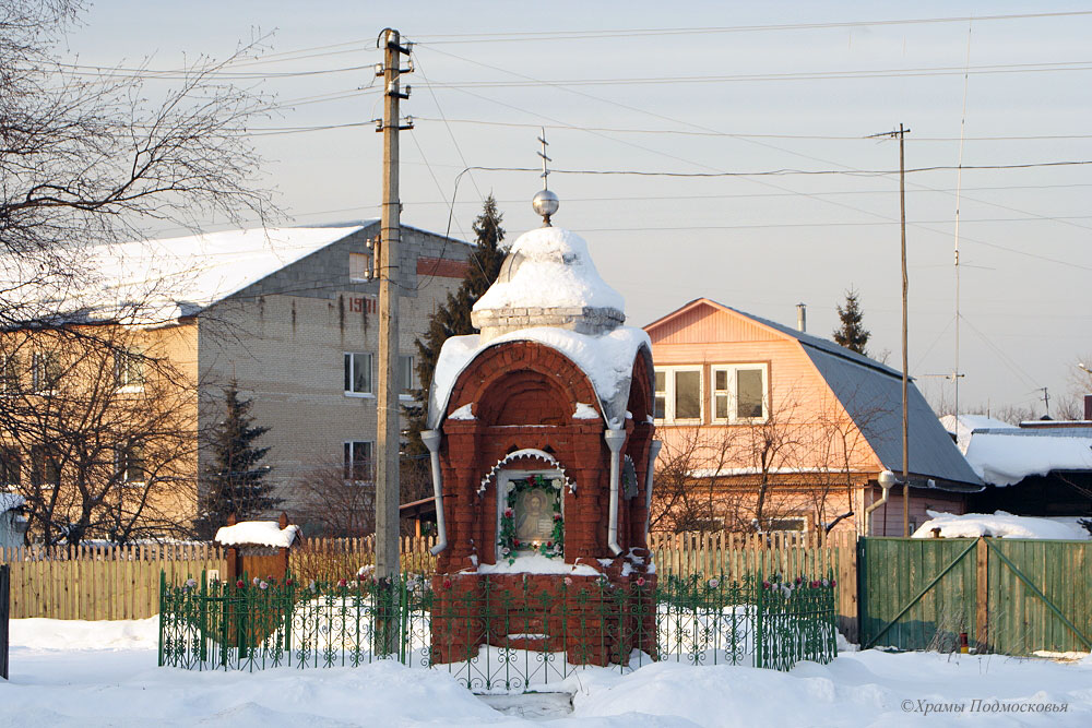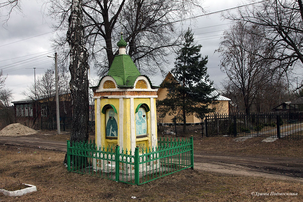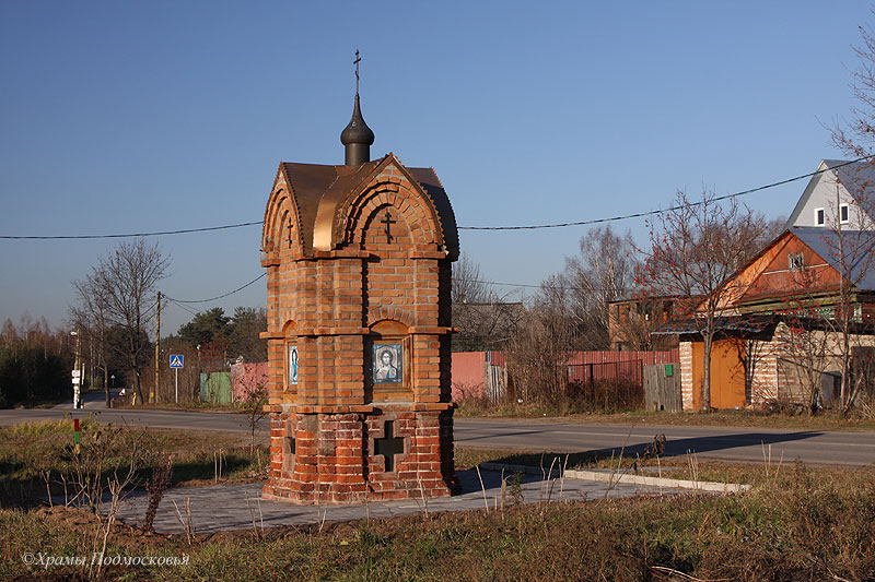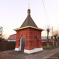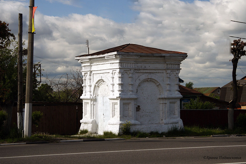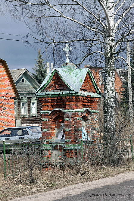 | Глухой квадратный в плане столб на высоком цоколе завершен восьмискатным покрытием. В несложной обработке граней с киотами в центре использована схема оконных наличников XVII в. с треугольным фронтоном.