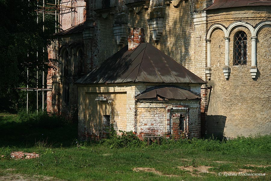 сломанным в сер. ХХ в. и заново возведенным при реставрации. С севера и юга к храму примыкают приделы, с запада – общая для церкви и